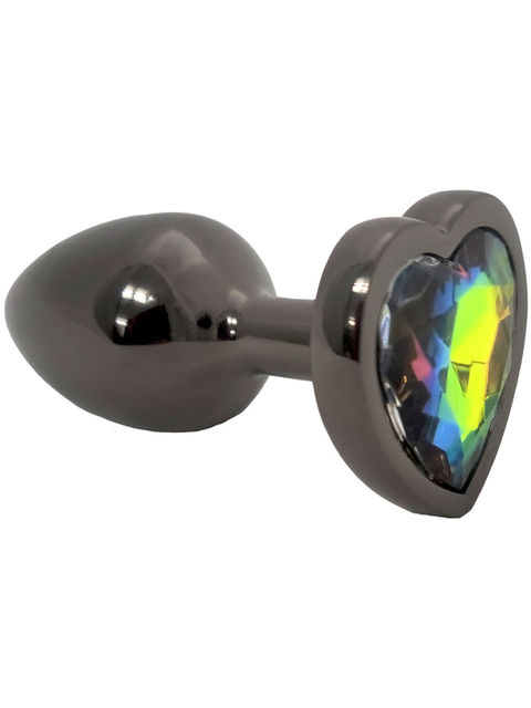 Fem Gem™ - Gunmetal Anal Plug with Rainbow Heart Gem Base